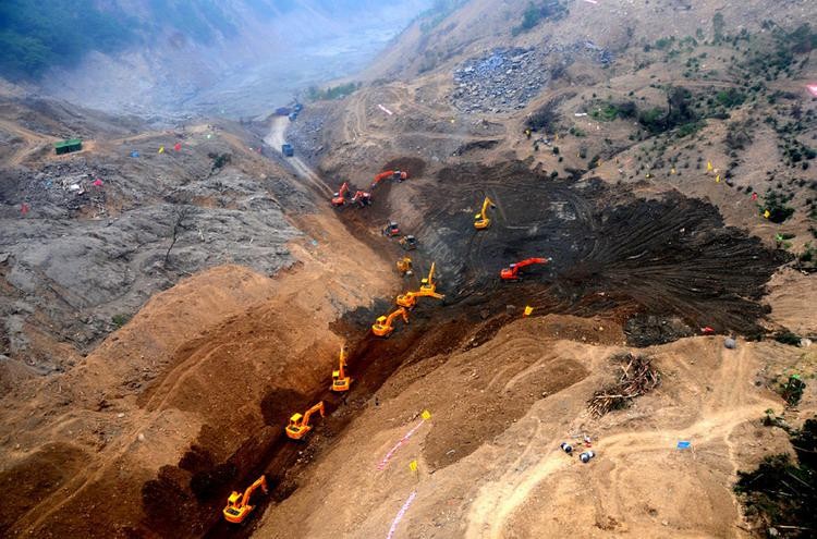 汶川地震誘發(fā)的唐家山堰塞湖排水渠施工現(xiàn)場(chǎng)