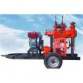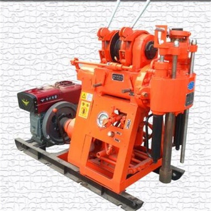 勘探以及打孔等鉆進工程;2.可根據(jù)地層的不同選用合金、鋼砂及鋼粒等鉆頭進行鉆進;3.可鉆2-9級的砂質粘土及基巖層等。二、主要特點1.具有油壓自動給進機構、鉆進效率高。2.采用上球卡夾持機構代替卡盤,可實行不停機倒桿。3.手柄集中、操作方便、安全可靠。4.結構緊湊,鉆機、水泵及柴油機都安裝在同一個底架上,占用場地面積小。5.重量輕、分解性強,便于,適合于平原和山區(qū)工作。鉆機參數(shù):型號: XY-100鉆孔深度: 100 m_開孔直徑: 219 mm終孔直徑: 73 mm液壓泵壓力: 1.2 Mpa液壓泵轉速: 1500 r/min立軸轉速: 142、285、570 r/min立軸行程: 450 mm提升能力: 9.8 KN鋼絲繩直徑: 9.3 mm排量: 100 L/min動力: S110柴油機、10KW電機