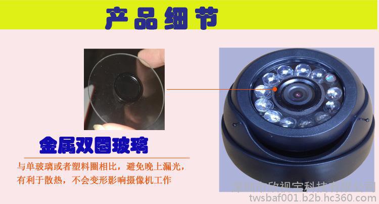 6.我們的是金屬鏡頭圈,雙玻璃(市面上大部分用都是塑料墊圈,用一段時(shí)間后易變形,導(dǎo)致晚上紅外燈反光,導(dǎo)致圖像白茫茫一片)