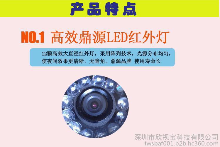 12顆鼎源紅外燈,使用壽命長,亮度更高;(市面上大部分用的是普通的監(jiān)控場所用的24個(gè)燈板海螺,那個(gè)是6個(gè)燈串聯(lián),如果一個(gè)燈壞了,6個(gè)燈就不亮,燈壞的幾率比較大。)