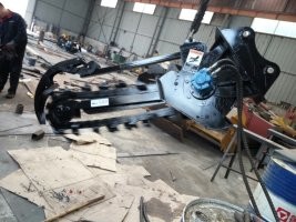 公路開溝機 開槽機 路沿石挖溝機,開溝機,挖溝機,鏈式開溝機,輪式開溝機,光纜開溝機,...本實用新型涉及一種挖溝開槽設備裝置,具體是一種用于鋪設農(nóng)田管道、城鄉(xiāng)光電纜等所用到的鏈條式開溝機。根據(jù)客戶需要研發(fā)設計而成,專為滑移裝載機,挖掘機做配套使用的新型開溝設備。它是在普通主機上通過安裝超低速變速器實現(xiàn)低速緩行,從而使溝深上下統(tǒng)一,寬度左右勻稱。該機采用回旋式開溝器,開溝寬度為10—30厘米,開溝深度可調(diào),最大開溝深度為150厘米,開溝速度每小時可達100—300米。所開溝形溝直、壁陡,溝深和溝寬統(tǒng)一,人工和挖掘機無法開出此溝形。主要適用于農(nóng)田水利灌溉地地下管道,自來水管道及地下電纜鋪設等項工作的開溝作業(yè)。·經(jīng)濟效益顯著:購買該機器,投資少,見效快,一臺機器能替代幾十個人的工作,還不用操心工人的吃住等一些雜事;