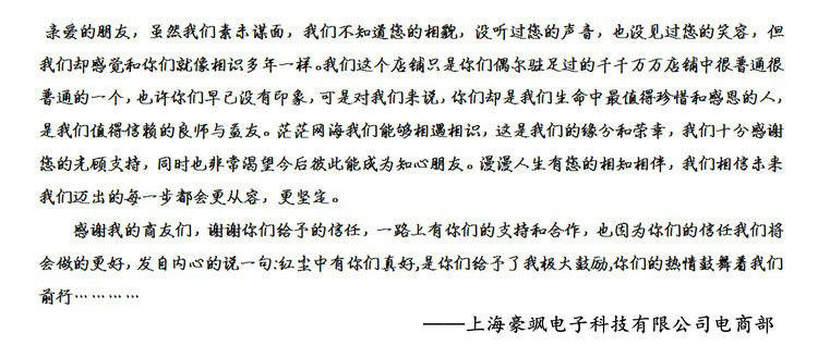 售后強:嚴(yán)格實行三包服務(wù),所售產(chǎn)品因自身質(zhì)量問題(非人為所為)外觀無劃傷:七天包換,一年保修,終身維修