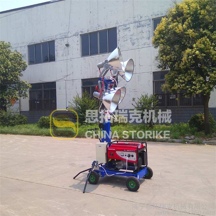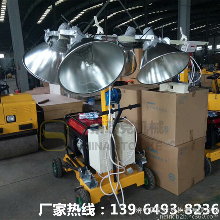 操作方便:燈具由燈架(包括燈盤,伸縮桿)和發(fā)電機座(包括發(fā)電機組,電器箱,發(fā)電機底座),上下兩部分組成,輕便并易于組合、拆卸和搬運,操作簡單,適用性強.發(fā)電機底座上安裝萬向輪可在坑洼的路面上運行.