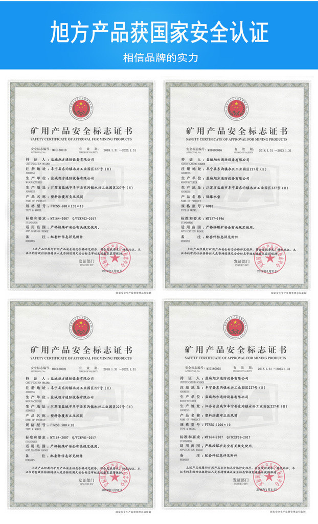 鹽城旭方通防設(shè)備有限公司是一家專業(yè)生產(chǎn)煤礦用風(fēng)筒 軸流風(fēng)機(jī)風(fēng)筒布的公司,旭方名下有(江蘇旭方風(fēng)筒布、鹽城旭方通防設(shè)備),其中鹽城旭方通防設(shè)備有限公司也是一家專業(yè)從事煤礦及隧道通風(fēng)安全產(chǎn)品的研究及生產(chǎn)的企業(yè),公司實(shí)力強(qiáng)大,產(chǎn)品暢銷,年產(chǎn)值5000萬(wàn),是你買礦用通風(fēng)機(jī)風(fēng)帶、PVC風(fēng)筒布考慮選擇的廠家,每年接待到廠參觀客戶超過(guò)200人次,是一家真正的實(shí)體生產(chǎn)型企業(yè)。到旭方公司購(gòu)買礦用風(fēng)筒布和礦用風(fēng)帶、PVC風(fēng)筒是一種趨勢(shì),也是一種捷便的網(wǎng)絡(luò)采購(gòu)方法,旭方風(fēng)筒網(wǎng)絡(luò)采購(gòu)讓你更放心!