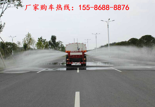 灑水車組成:由管道、四位三通球閥、直通球閥、過濾網(wǎng)、口(前沖后灑、側(cè)噴;高位側(cè)花灑;后工作平臺,帶綠化灑水高)組成。變速箱上安裝的取力器帶動灑水泵,灑水泵產(chǎn)生動力,將罐部的液體通過管網(wǎng)噴灑出去。工作范圍:自吸高度:≥7m,灑水寬度:≥14m,射程:≥28m;可調(diào)節(jié)成柱狀,射程≥28m;也可調(diào)節(jié)成霧狀,射程≥5m。