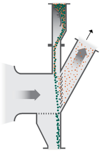續(xù)下降,經(jīng)過二次進風口時,高壓風把經(jīng)過初選的砂