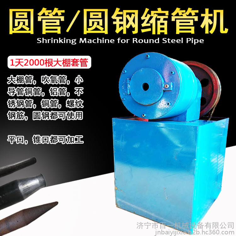 縮管機(jī)用于加工金屬管為錐形管,有手動(dòng)自動(dòng)可供選擇,具有噪音小,易操作。產(chǎn)量高、性能穩(wěn)定等特點(diǎn),工件成型時(shí)間短,效率高,加工較光滑,工件輕微傷痕。機(jī)器磨具更換簡(jiǎn)單,在相應(yīng)磨具配合下可加工不同形狀金屬管,滿足不同需求。適用于汽車,家具燈飾,自行車,注漿小導(dǎo)管錐度成型加工。