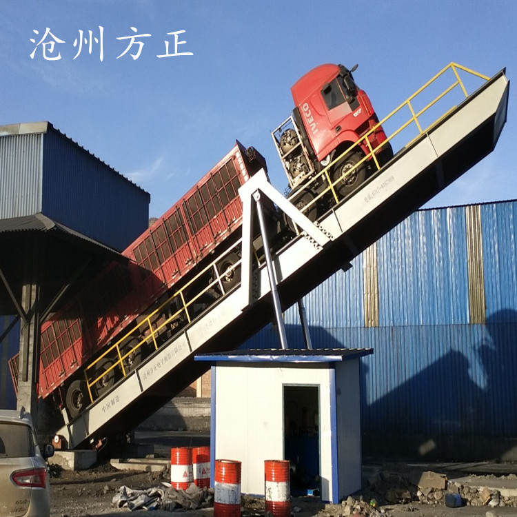 方正DDFB系列散料汽車卸車翻板裝置,可卸:沙石,稀土,廢鋼,木片、塑料、糧食等。 是一種現(xiàn)代化的物料卸載設(shè)備,只要倒車上去,可以自動直接卸料,一切OK,省時省力省錢,高速高效安全可靠;卸車效率很高。此設(shè)備可適用于港口、各類倉庫、資源回收,廢鋼電廠,加工廠對散狀物料的自動卸載;同時也廣泛用于化工、冶金、礦山以及一切有散裝物料接收作業(yè)的單位和部門。 滄州方正100噸自動液壓卸車翻板
