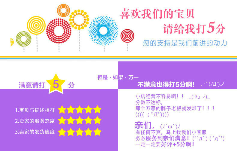 我們珍惜每一個(gè)評(píng)價(jià),如果您對(duì)收到的商品不滿意或者有異議,請(qǐng)高抬貴手,在評(píng)價(jià)前先和本店客服聯(lián)系溝通一下,本店一定耐心積極的為您解決,請(qǐng)不要因?yàn)橐粫r(shí)意氣用事做出沖動(dòng)的中、差評(píng),謝謝,望親們理解。