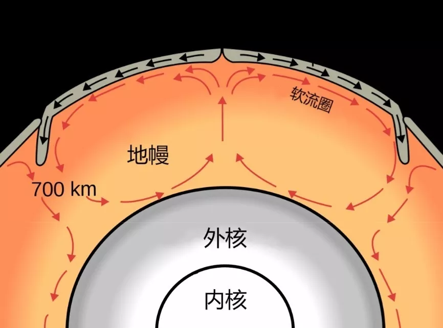在以百萬年為尺度的地質(zhì)年代中,我們可以把地?醋鞒壓竦恼承晕镔|(zhì),不是固體,也不是完全的液體,地幔的某些區(qū)域溫度較高,那么在地幔中是不是也存在類似的對流形式呢?