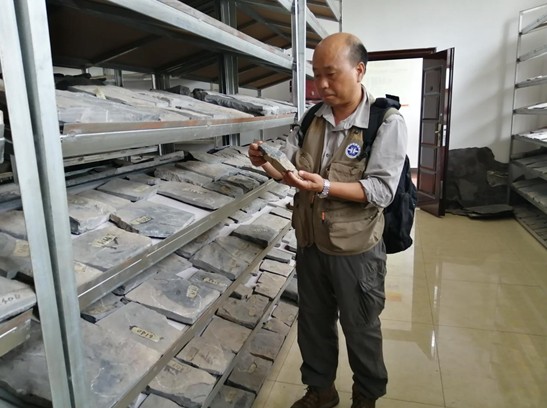 成都地調(diào)中心研究員(三級(jí))、國(guó)土資源部羅平生物群野外科學(xué)觀測(cè)研究基地主任張啟躍在觀察化石標(biāo)本。