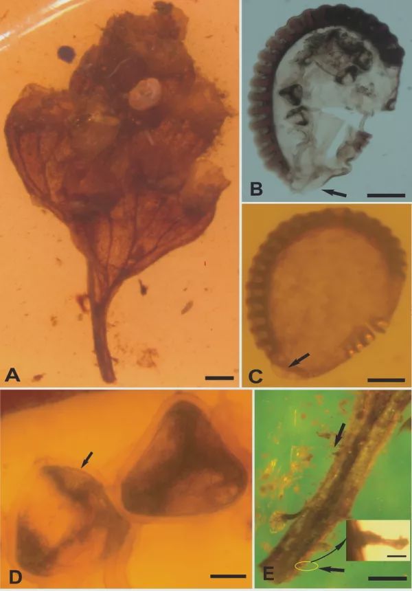 化石標(biāo)本在這方面卻具有獨(dú)特的優(yōu)勢(shì)。近年來(lái),緬甸琥珀研究持續(xù)升溫,對(duì)比緬甸琥珀內(nèi)昆蟲(chóng)化石的研究,緬甸琥珀中的蕨類(lèi)植物化石研究較少,先前僅有德國(guó)和美國(guó)研究者的幾例報(bào)道,而且報(bào)道過(guò)的類(lèi)群?jiǎn)我,均為水龍骨?lèi),其他類(lèi)群的研究尚未見(jiàn)報(bào)道。