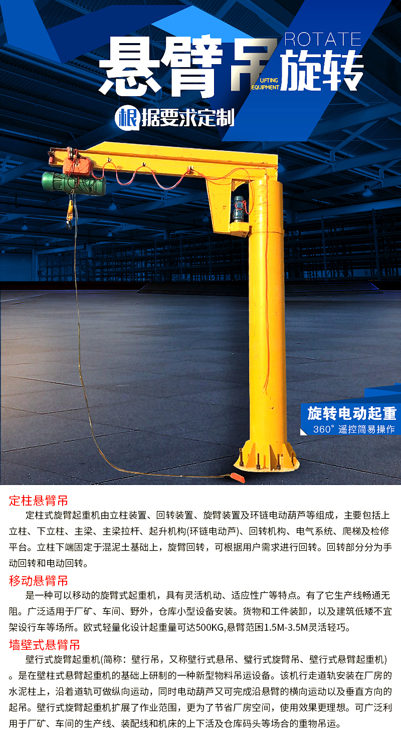 定制定柱式懸臂吊1噸2噸3噸5噸360℃單臂吊遙控電動旋臂起重機