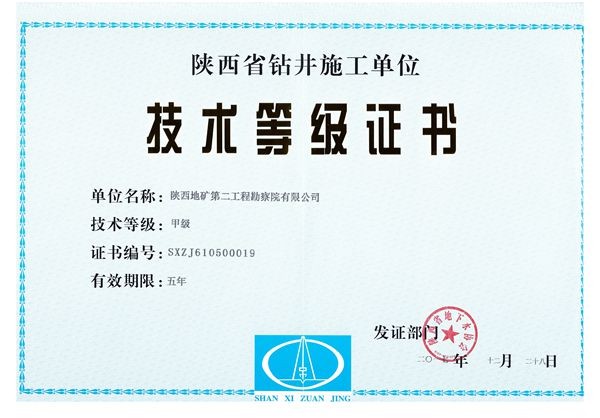 文章來源于:陜西地礦綜合地質(zhì)大隊(duì)有限公司,原文鏈接:陜西地礦第二工程勘察院有限公司鉆井甲級(jí)資質(zhì)成功換證