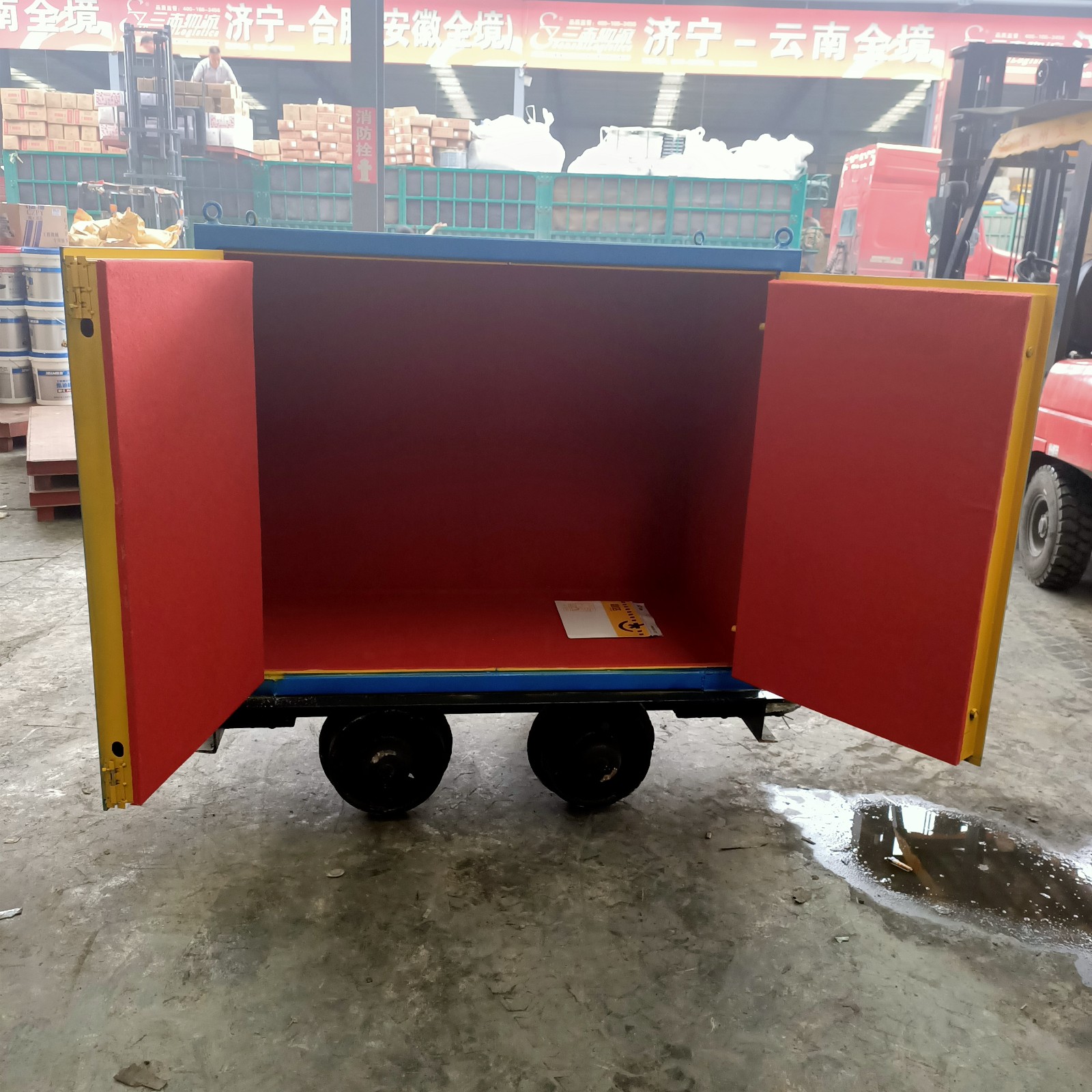 礦車式品運(yùn)輸車是山東邦泰的新開發(fā)產(chǎn)品,為解決井下軌道火工品的安全運(yùn)輸問題而解決。礦車式尺寸都是定制的,沒有特別固定的尺寸,一般根據(jù)客戶提供的要求來定制,參考罐籠尺寸、存放量等問題。
