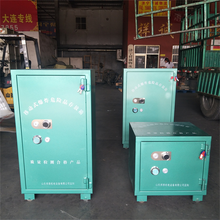 炸藥存放柜是炸藥庫房到爆破工程點(diǎn)所需要的運(yùn)輸工具,也可做為暫時危險品存放柜存放火工品。雷管和炸藥不能混放。爆炸危險品存放柜,顧名思義為存放爆炸危險品的柜子,例如炸藥、雷管等火工類產(chǎn)品。為何會用到此類柜子,什么地方需要使用,就看當(dāng)?shù)赜袥]有爆破工程,用不用得到爆破器材。一般修建鐵路、公路、橋洞、水利爆破、地質(zhì)勘探、礦山爆破中使用較多,多山地區(qū)和多礦地區(qū)都對爆炸危險品存放柜(也稱炸藥柜、雷管柜)有一定的需求。