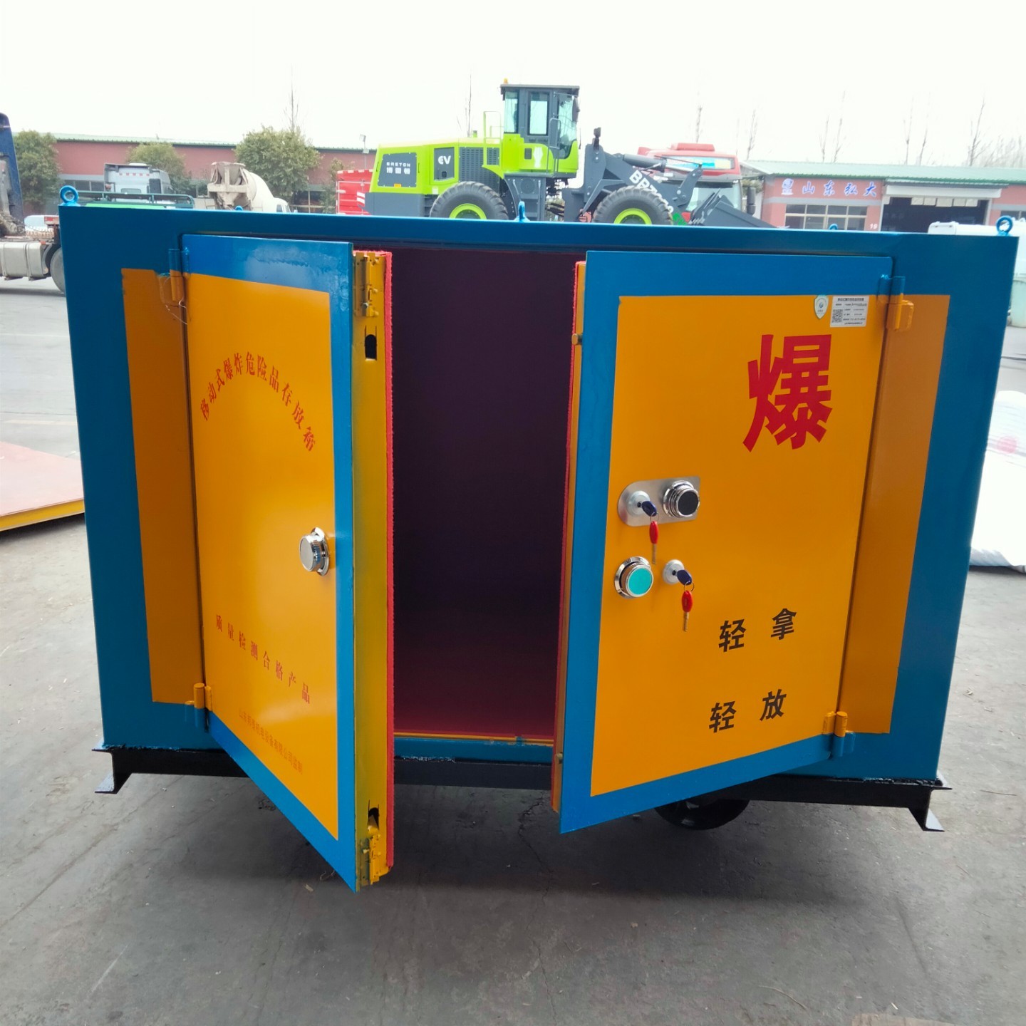按照存放量的多少,分為存放箱,存放柜,存放庫(kù),下面為大家介紹一款存放柜。存放柜材質(zhì)使用的是6-8mm厚的防爆鋼板,內(nèi)層是10mm厚防靜電木板,最里層是約2mm厚的防靜電阻燃?xì),鎖具配有一個(gè)機(jī)械密碼鎖和兩把十字鎖,鑰匙由兩人分開(kāi)保管,四角可安裝吊環(huán),便于裝卸。