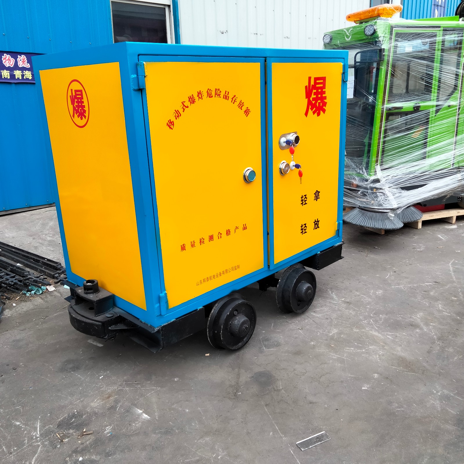 軌道炸藥運(yùn)輸車(chē),主要應(yīng)用于井下軌道上運(yùn)輸炸藥雷管等爆炸危險(xiǎn)品。的運(yùn)輸和儲(chǔ)運(yùn)。一般應(yīng)用的軌距包括有600軌距,762軌距和900軌距。適合于各種煤礦,金屬礦等礦井下的軌道上運(yùn)輸爆炸物品使用的一款井下炸藥運(yùn)輸車(chē)。