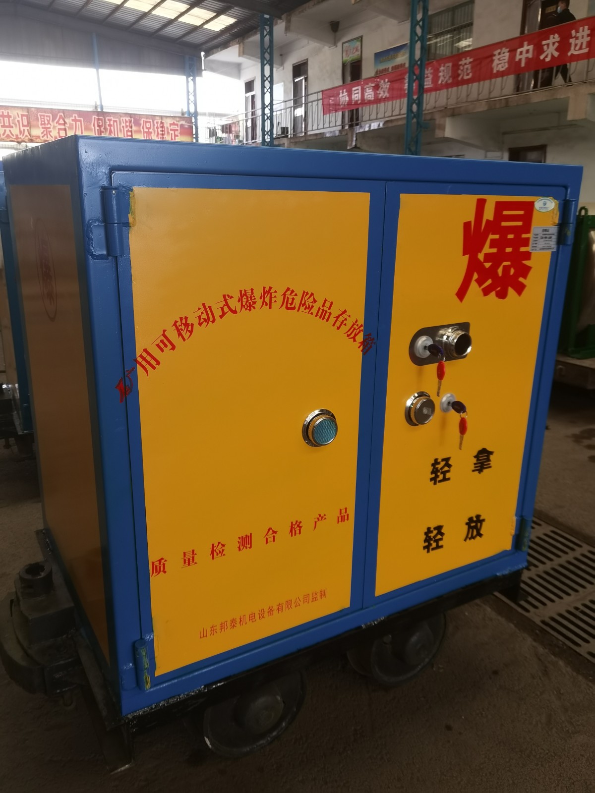 井下爆破器材運(yùn)輸車是一款兼具存儲和運(yùn)輸兩種功能的專用運(yùn)輸車量,可用于向井下運(yùn)輸炸藥,雷管等易燃易爆物品,配有一個機(jī)械密碼鎖和兩把明鎖,鑰匙需由爆破人員分開保管,以確保存放安全性。