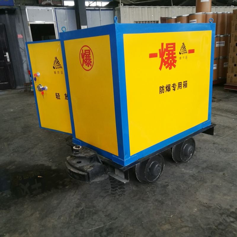 第二部分為專用礦車,礦車軌距(600mm/762mm/900mm),滿足大部分礦山井上井下軌道運(yùn)輸爆破器材的要求,整車集儲存,運(yùn)輸于一體的功能,具有防爆、防震、防盜、防火、防靜電等特點(diǎn)。