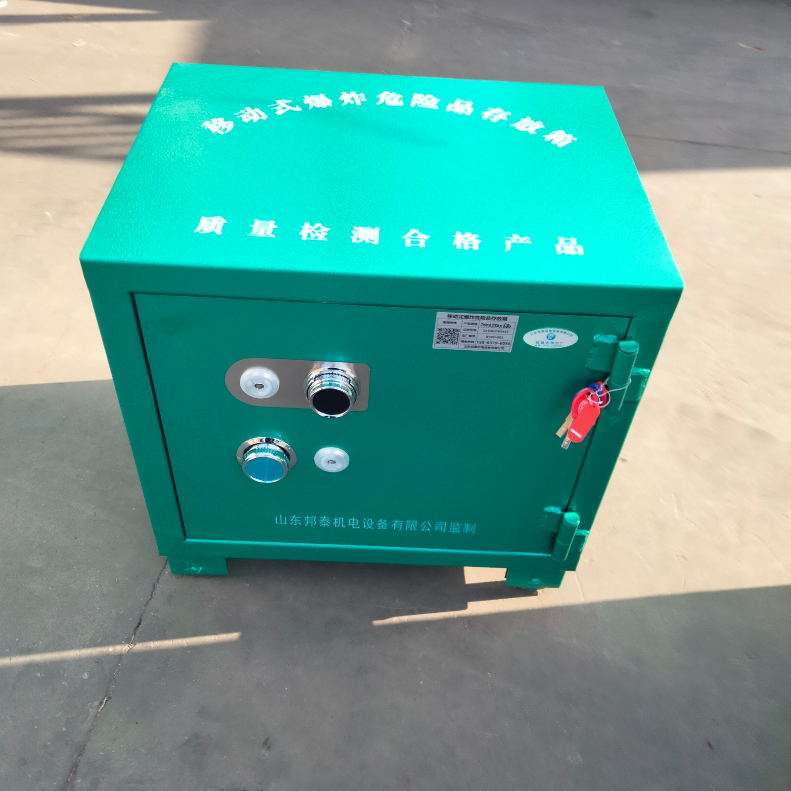 柜體外層采用加厚鋼板制做成型,機(jī)械鎖和密碼鎖雙重防護(hù),內(nèi)部是木板和抗震防靜電的氈墊,具有很好的防護(hù)功能,規(guī)格多樣,根據(jù)存放量多少,存放炸藥一般從4箱到20箱不等,自助設(shè)計(jì),結(jié)構(gòu)合理,充分利用空間,也可根據(jù)需求特殊定制。