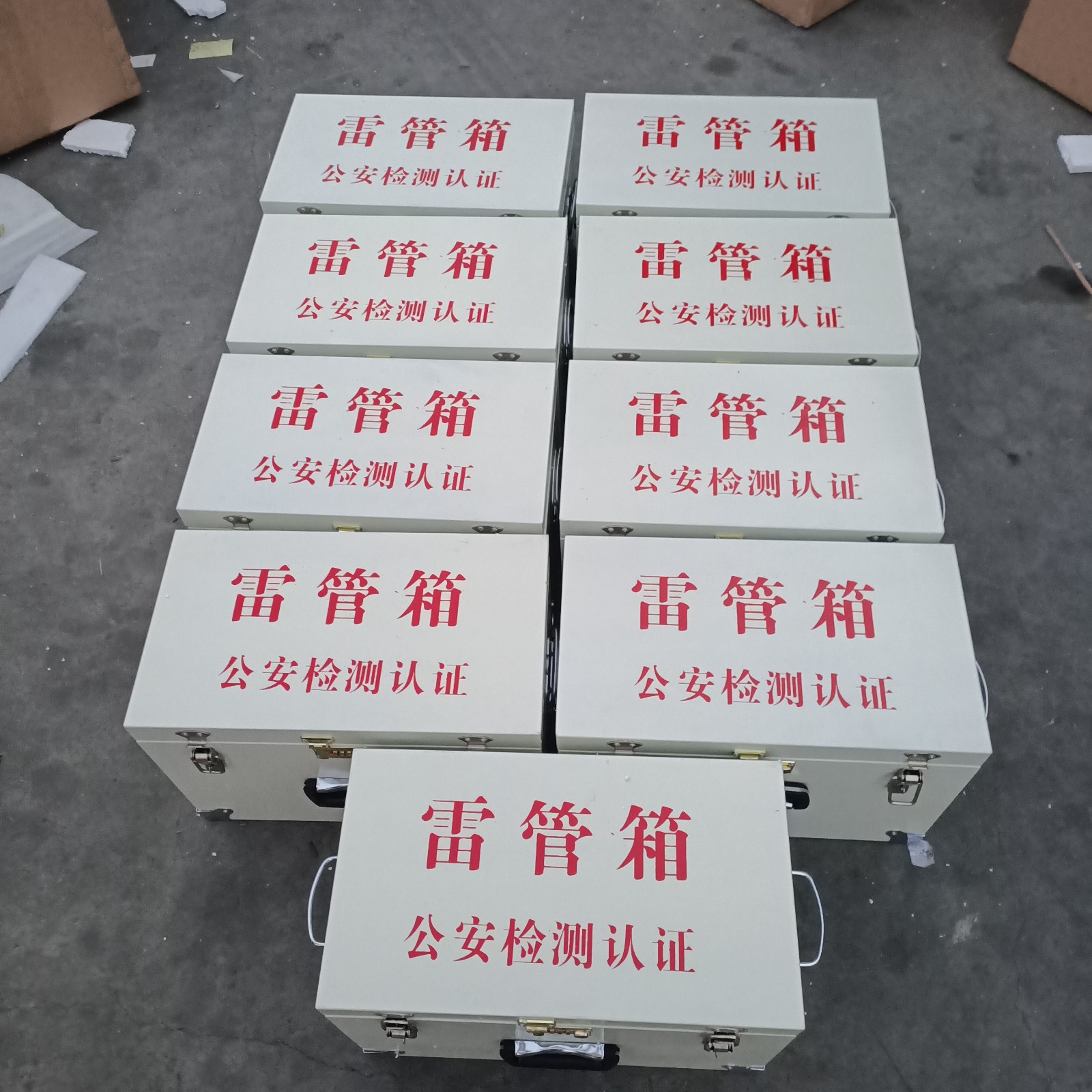 在火工品的存放和運(yùn)輸環(huán)節(jié),對(duì)存放器具是有嚴(yán)格要求的,存放量較少適用于臨時(shí)使用的器具可選用便攜式存放箱,防爆炸藥箱或者雷管箱,是采用金屬鋼板材質(zhì)焊接成型,箱體結(jié)構(gòu)結(jié)實(shí)耐用,內(nèi)部有一層木板支撐并貼有抗震防靜電氈墊,箱體底部四角做不銹鋼包角處理,耐磕碰。鎖具是一個(gè)三位密碼鎖和兩個(gè)掛鎖扣,可自行購(gòu)買(mǎi)掛鎖配合密碼鎖一起使用,安全性更高。