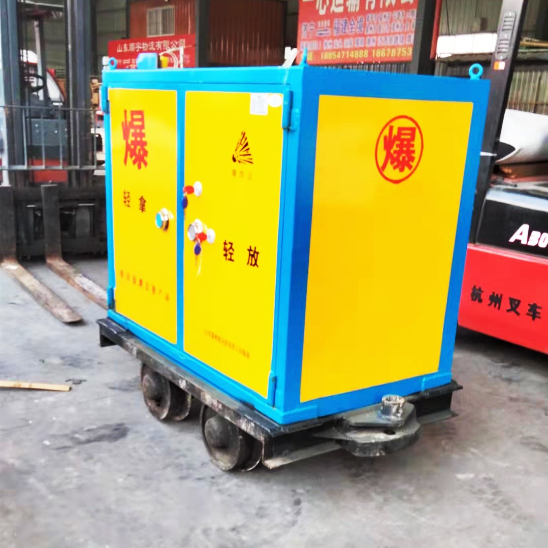 井下爆破器材運(yùn)輸車是一款兼具存儲(chǔ)和運(yùn)輸兩種功能的專用運(yùn)輸車量,可用于向井下運(yùn)輸炸藥,雷管等易燃易爆物品,配有一個(gè)機(jī)械密碼鎖和兩把明鎖,鑰匙需由爆破人員分開保管,以確保存放安全性。
