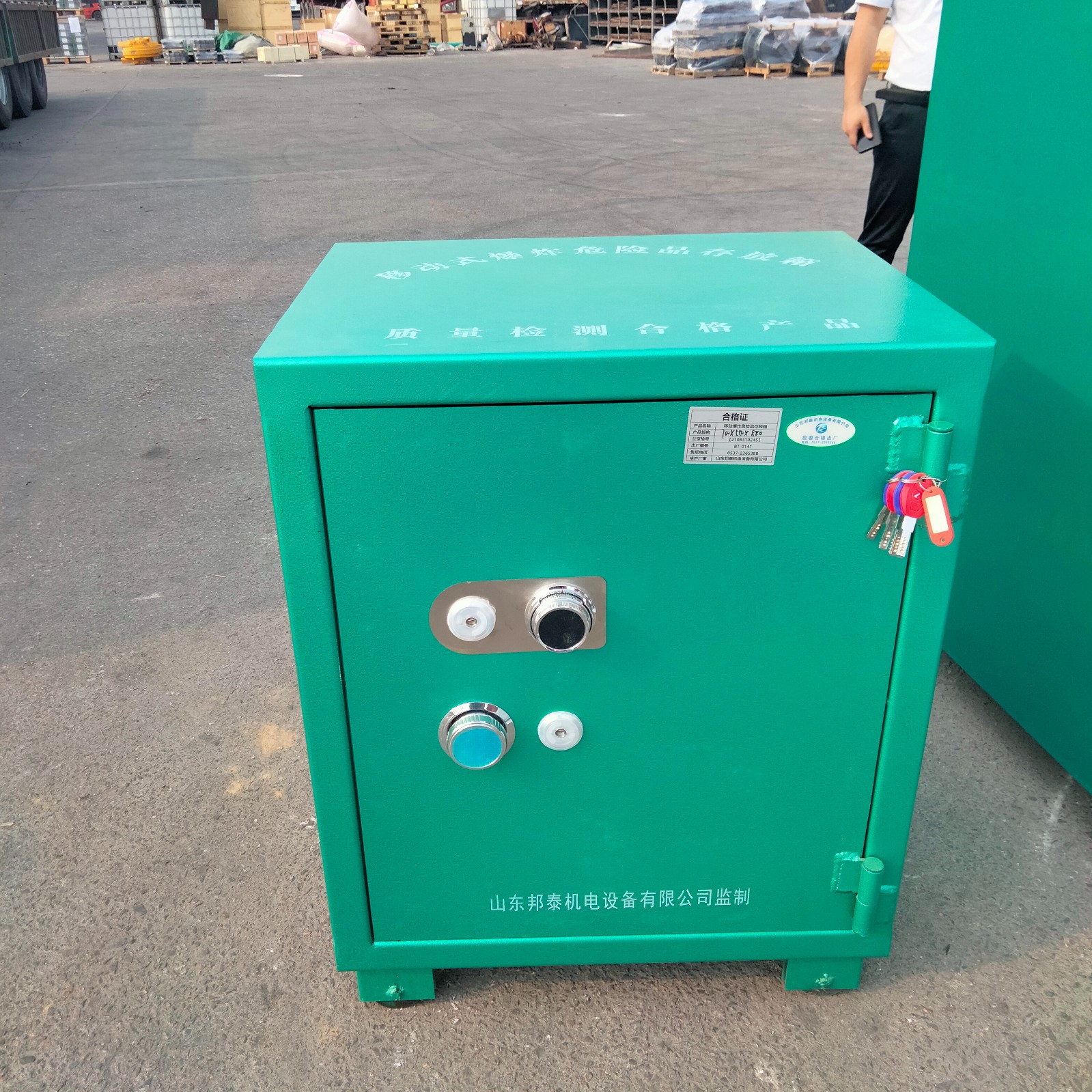 移動(dòng)式爆炸物品存放柜具有專業(yè)檢測(cè)的資質(zhì),帶有“移動(dòng)式爆炸危險(xiǎn)品存放箱”的公安檢測(cè)報(bào)告和防靜電墊檢測(cè)報(bào)告以及防爆檢測(cè)合格證。