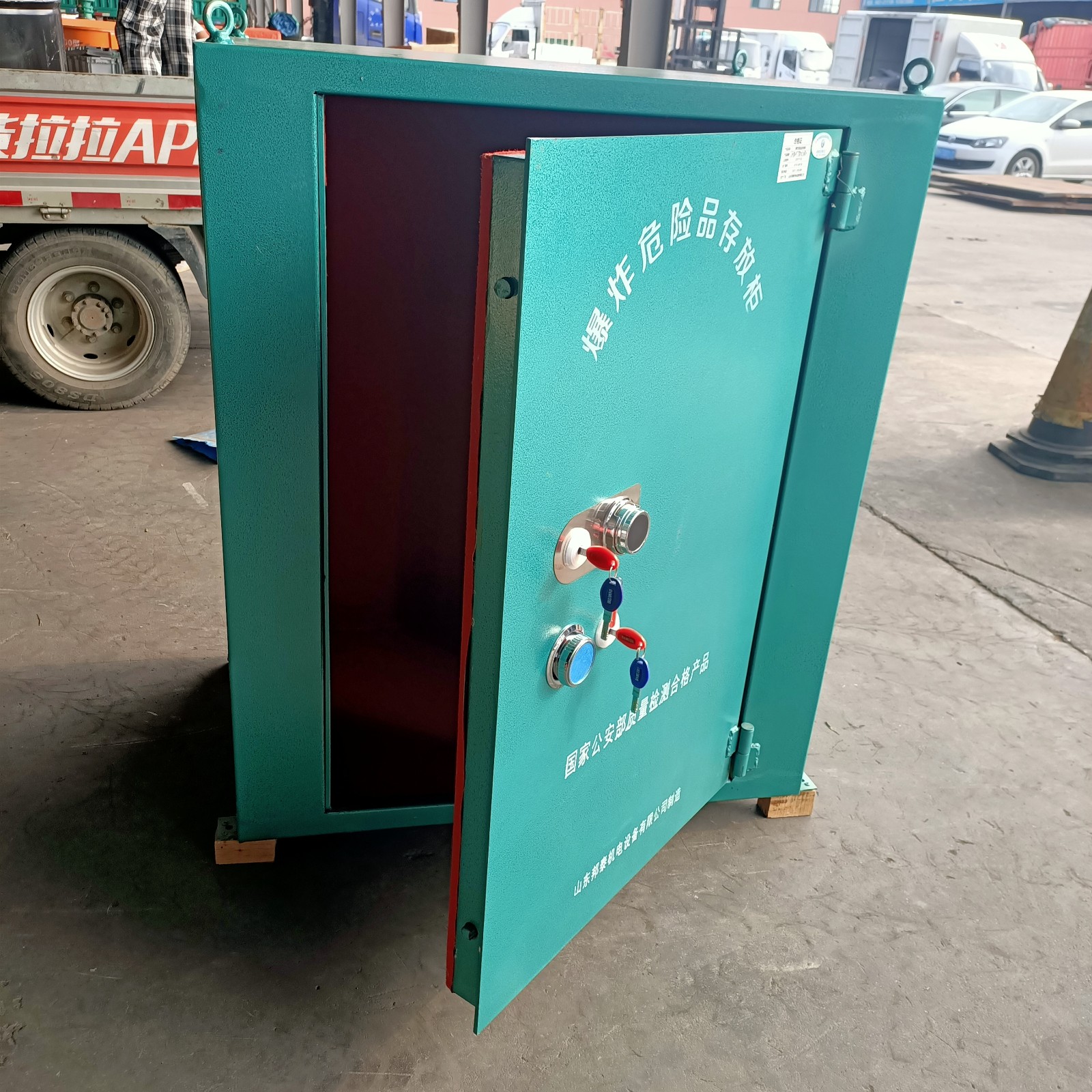 對于存放和運(yùn)輸火工品這樣的危險(xiǎn)品,安全性顯然是最重要的考量因素。這種箱子所采用的防爆鋼板材質(zhì)可以保證箱子在承受外力,甚至受到爆炸直接沖擊的情況下,都能夠有效防護(hù)里面存放物品不易損壞,因鋼門板的板材厚度可達(dá)約6mm厚。