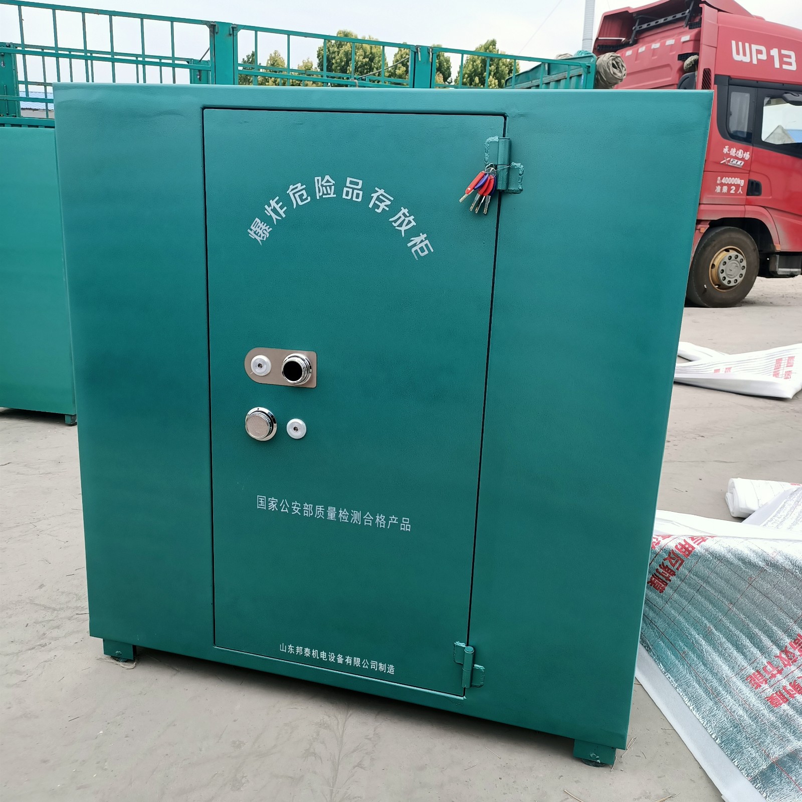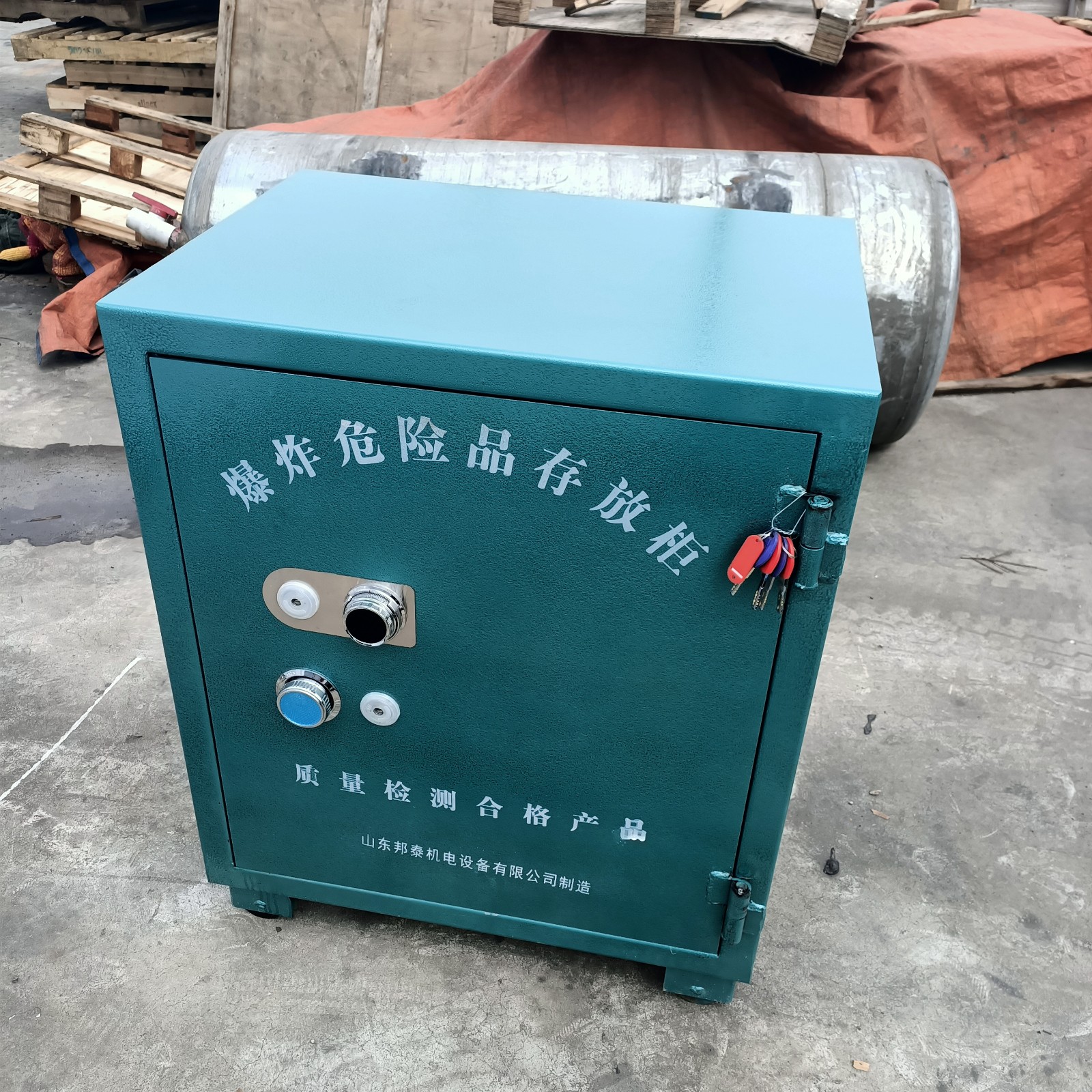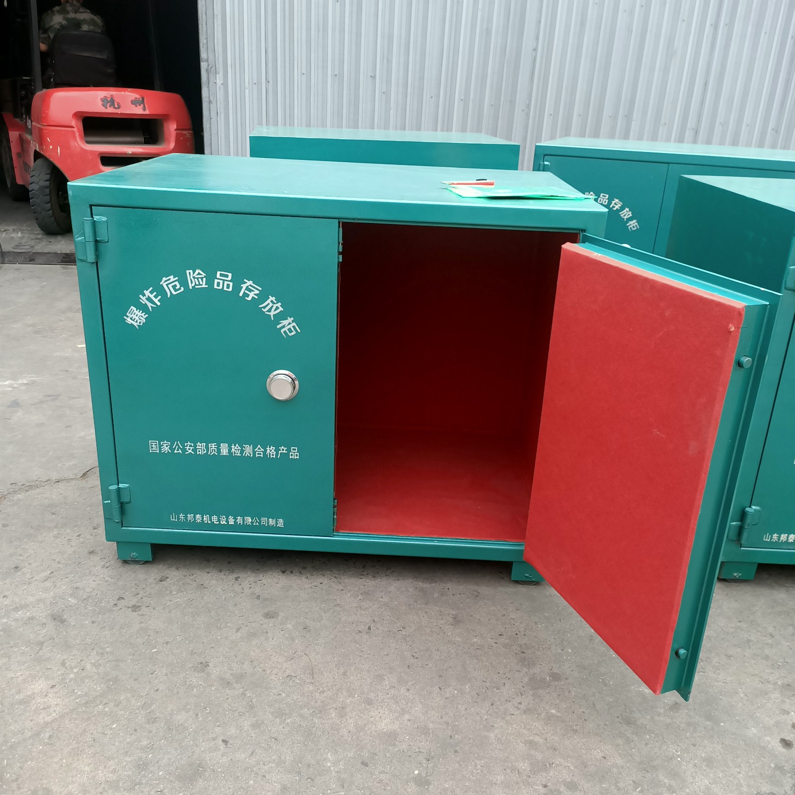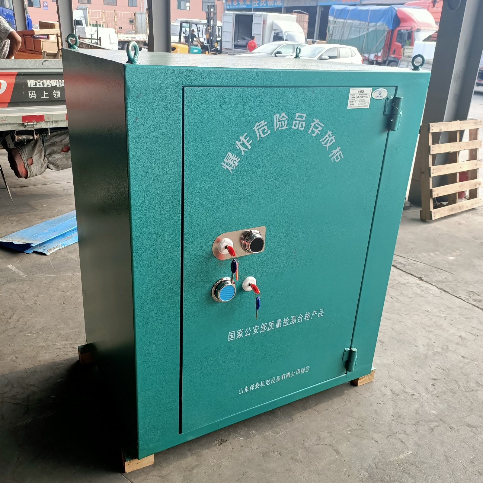 經(jīng)由道路運輸民用爆炸物品的一款專用存放柜,也叫移動式民爆物品存放柜,可固定放在存取處,也可放置于車上,用于車載式運輸,由于存放物品性質(zhì)的特殊性,對存放柜是有嚴(yán)格要求的,具有防爆,防靜電,防盜等特性,材質(zhì)組成分別是鋼板+絕緣木板+防靜電氈墊,由于外層鋼板厚度要求不得低于6mm,柜體堅硬,不易變形,有效防護民爆物品的存放安全,門板上安裝有兩把十字機械鎖和一個密碼鎖,鑰匙由專業(yè)人員存放。