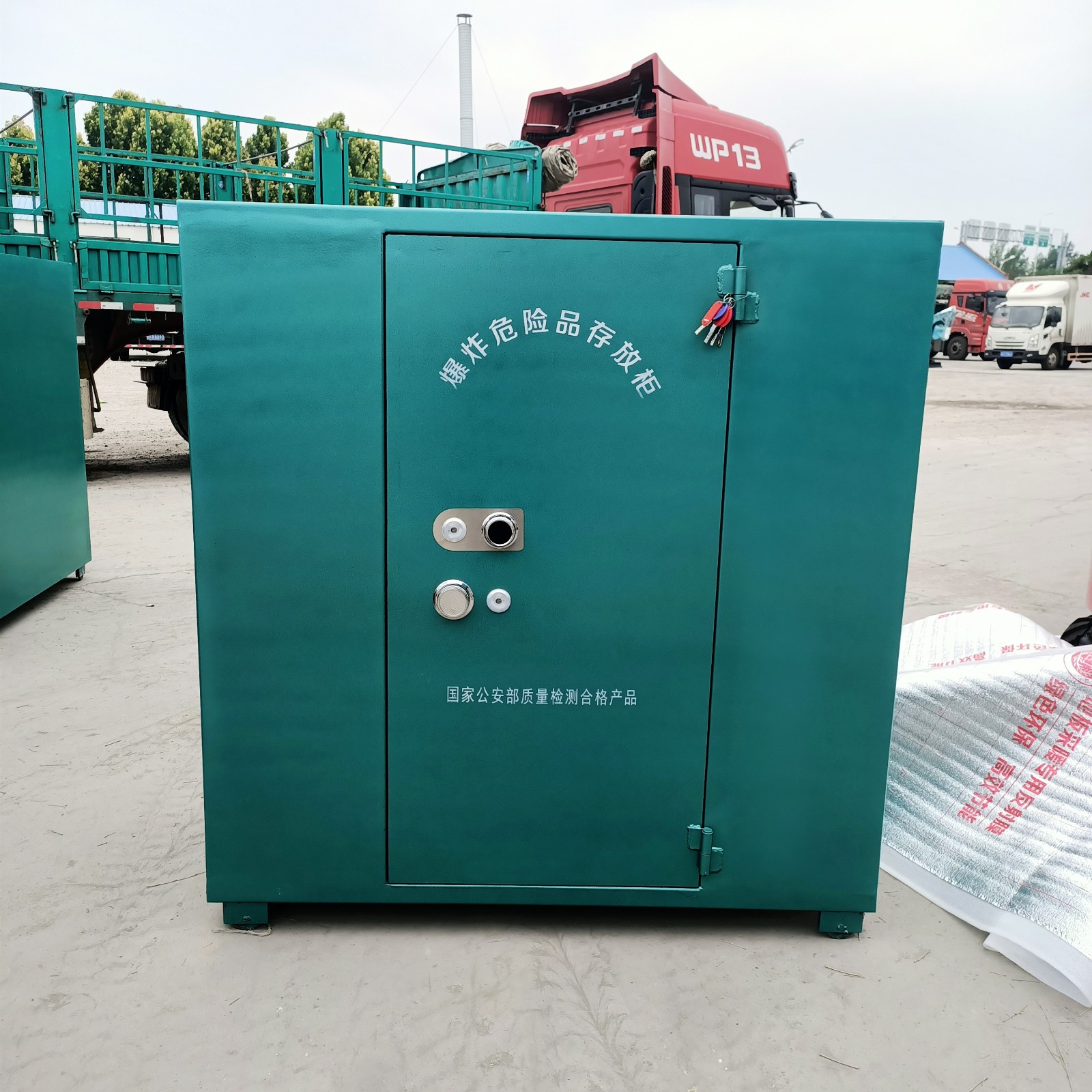柜體采用6-8mm厚的鋼板焊接而成,內(nèi)部為絕緣木板和防靜電阻燃?xì)謮|,存放柜容量,存放炸藥一般從100-500公斤不等,尺寸也可以根據(jù)使用需求定制。