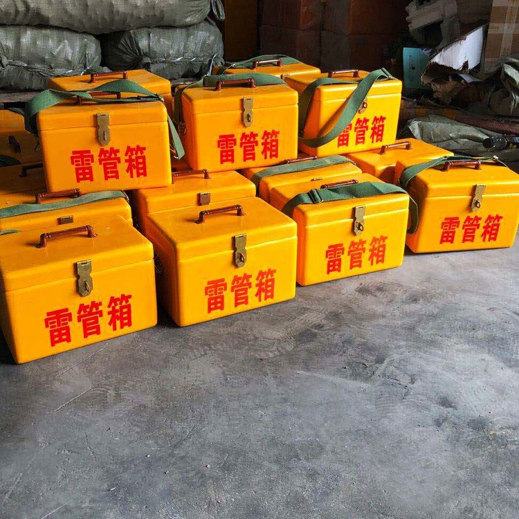 爆破器材的儲存安全問題也是需要重視的,按照功能劃分,可分為炸藥箱和雷管箱,由于炸藥和雷管不允許混放,必須分別放在專用箱體內,在裝卸時,要輕拿輕放,不準投擲。金屬鋼板材質炸藥箱/雷管箱,最外層是金屬鋼板焊接,內部為絕緣木板和防靜電阻燃氈墊,氈墊也具有一定的防震效果,防止工人背運過程中,由于顛簸造成響動;箱子前側或者上側安裝有聚氨酯舒適提手,長時間手提運輸,不勒手,兩側可安裝尼龍背帶,也可肩背攜帶,便利。