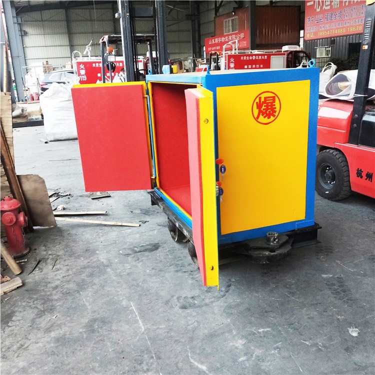 運輸車由礦車輪對和承載爆破器材存放柜組合而成,礦車輪根據(jù)實際軌距來選擇,礦山軌距通常為600/762/900mm幾種規(guī)格。
