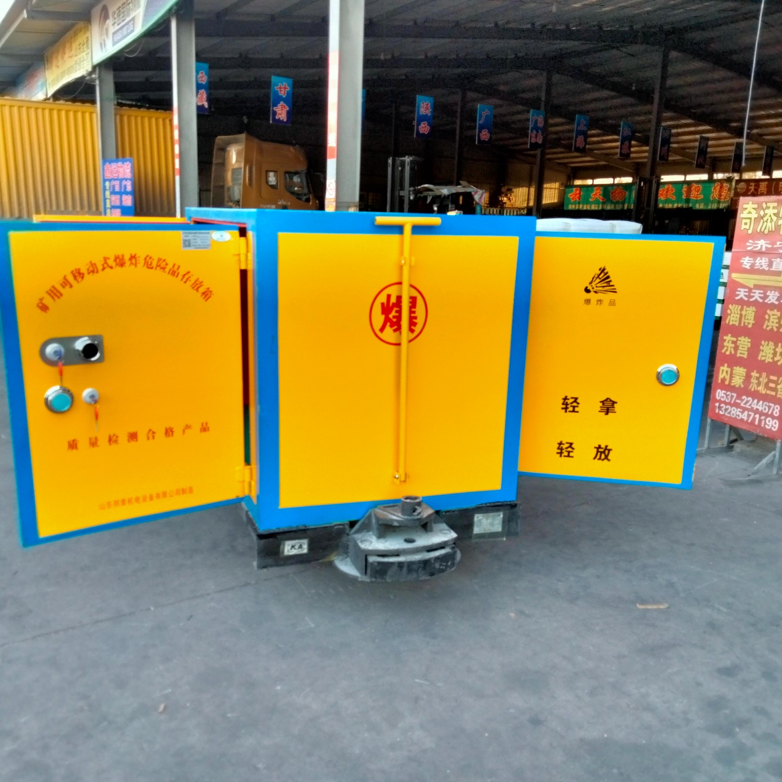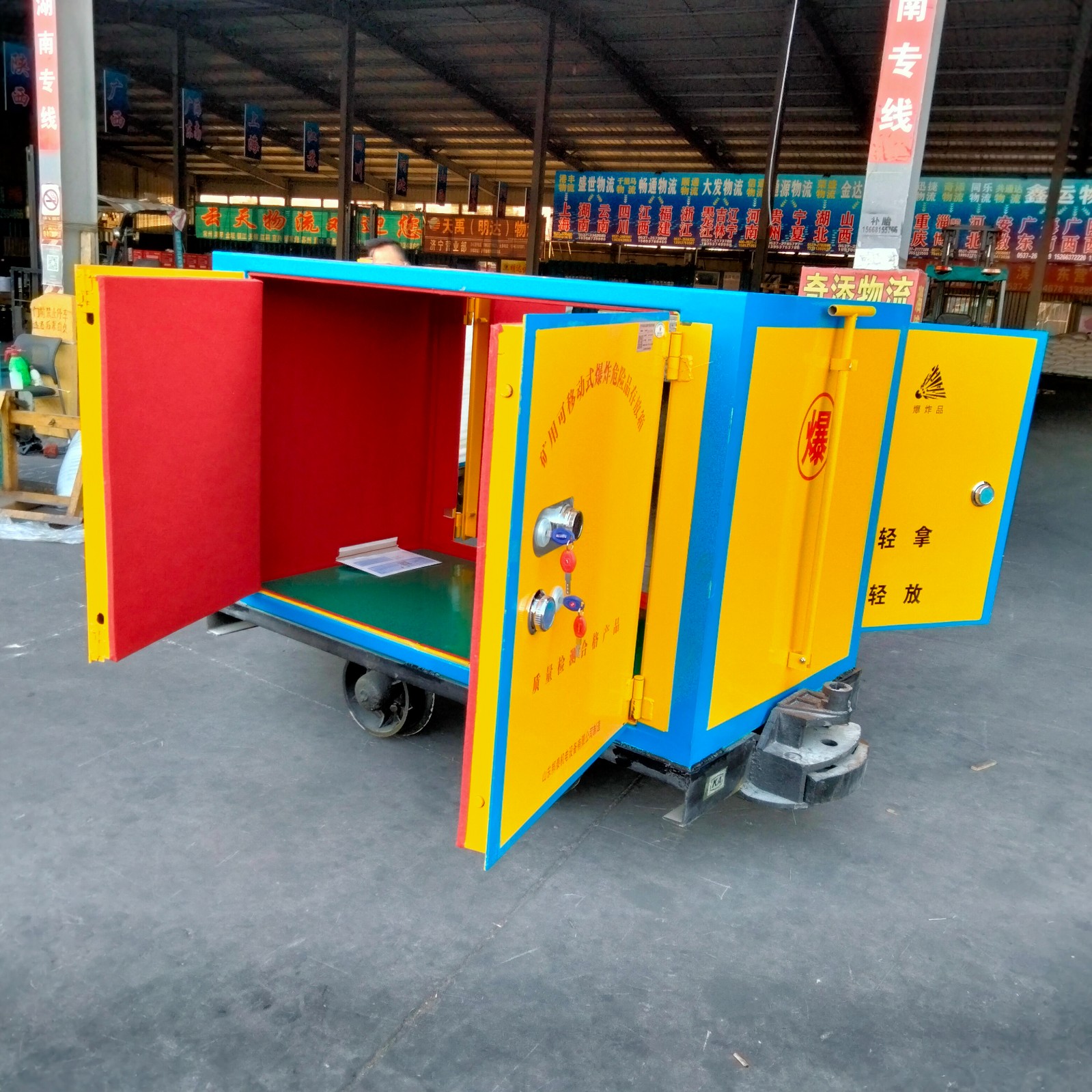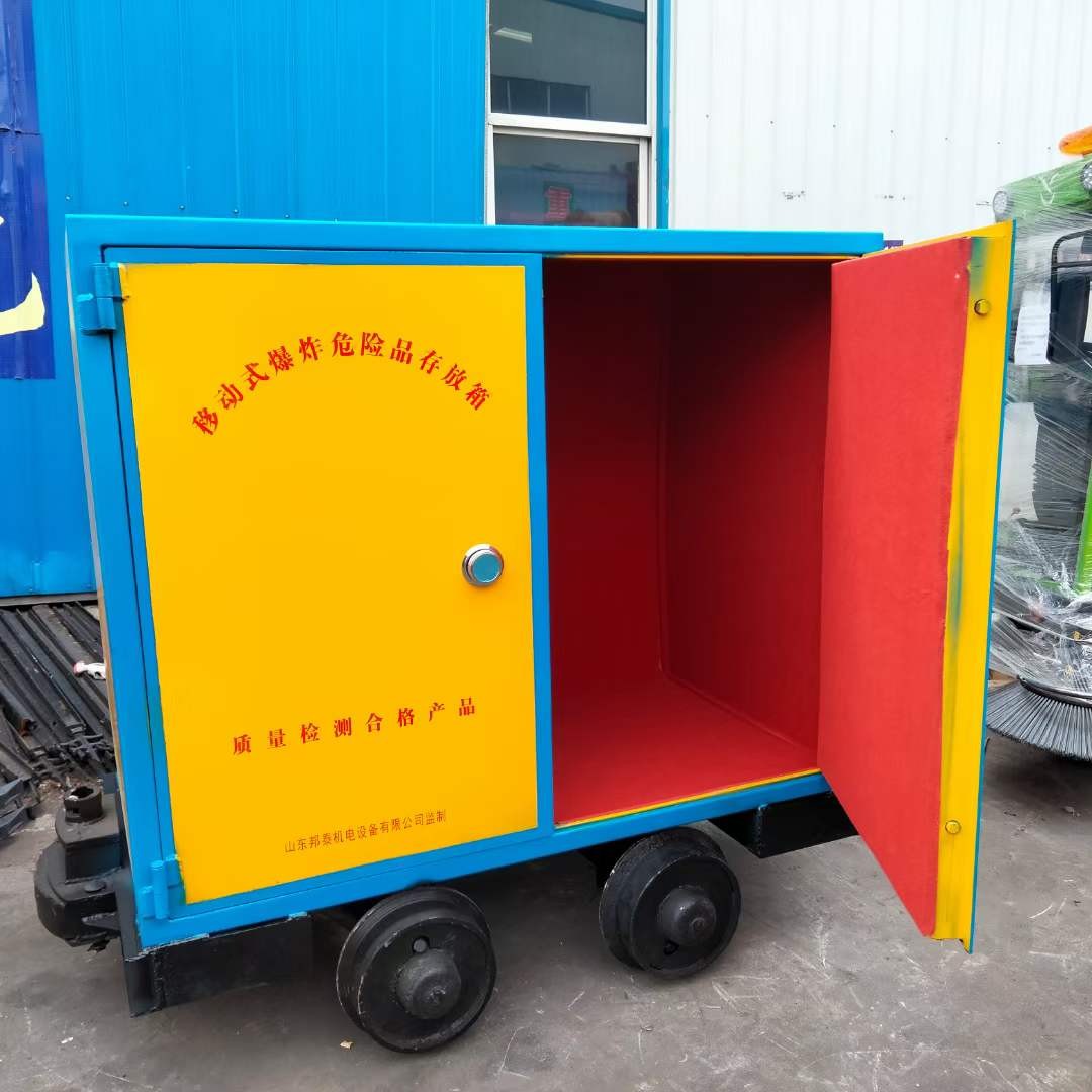 礦井下用的運輸車是要有證書齊全的,而且還要正品的國標產品,這樣才可以符合礦井下的使用標準,我們的箱體,鋼板是6-8mm厚的防爆鋼板,加上10mm厚的防靜電木板,還要1mm的防火阻燃氈,是正品的國標產品,而且我們的證書齊全,有檢測證書還有防靜電證書,合格證書,都是可以在安標網(wǎng)上查到的,所以購買一定要認準國標產品,否則不僅耽誤工期還會檢查不合格爆破用可移動式爆炸危險品存放箱