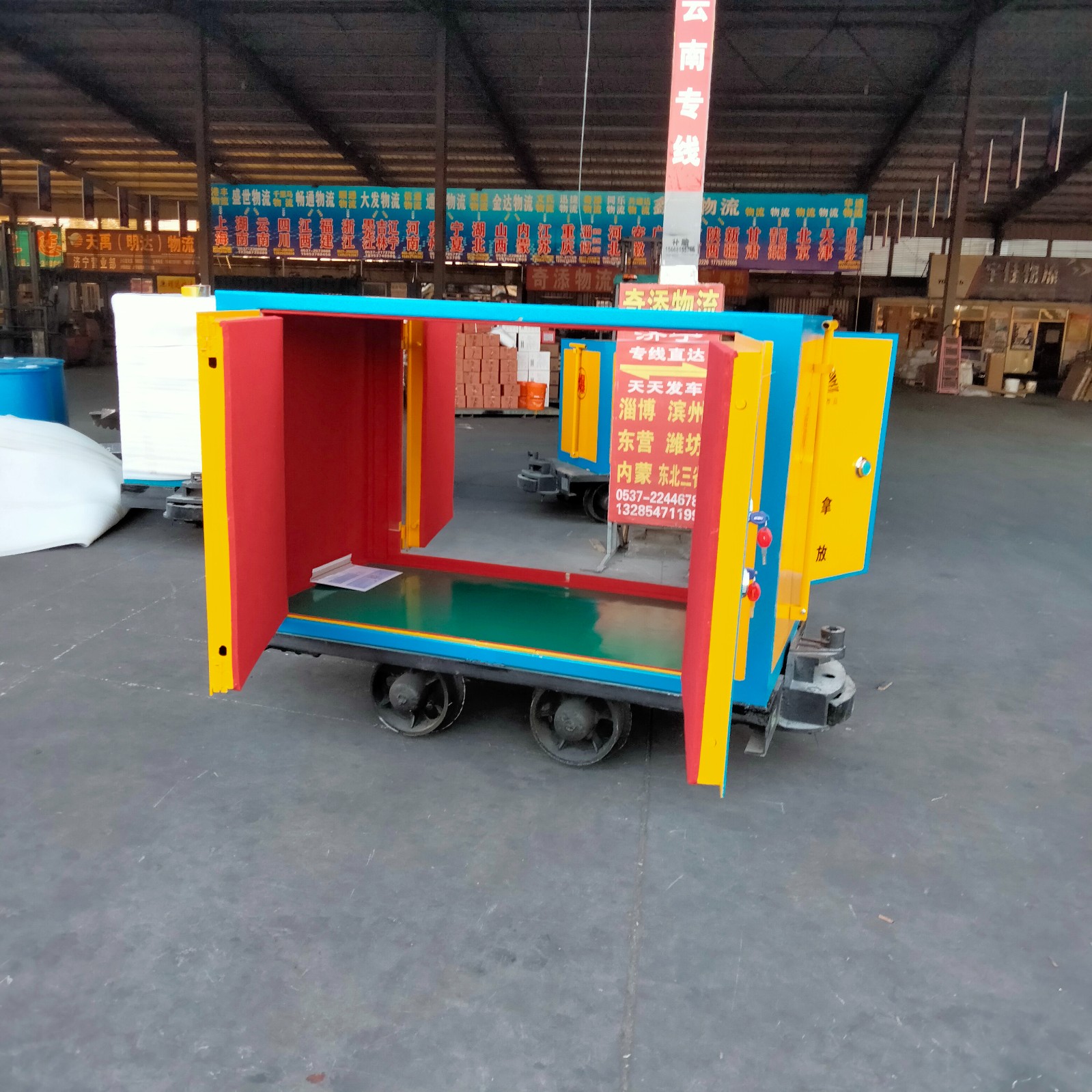 炸藥雷管運輸車,主要是用在礦并下,在軌道上來進行運輸?shù)囊环N軌道車。這個軌道車和別的還不一樣,它主要是用來運輸火工品的,之前的軌道車主要是用來運輸煤炭,或者礦井下開采出來的物資,