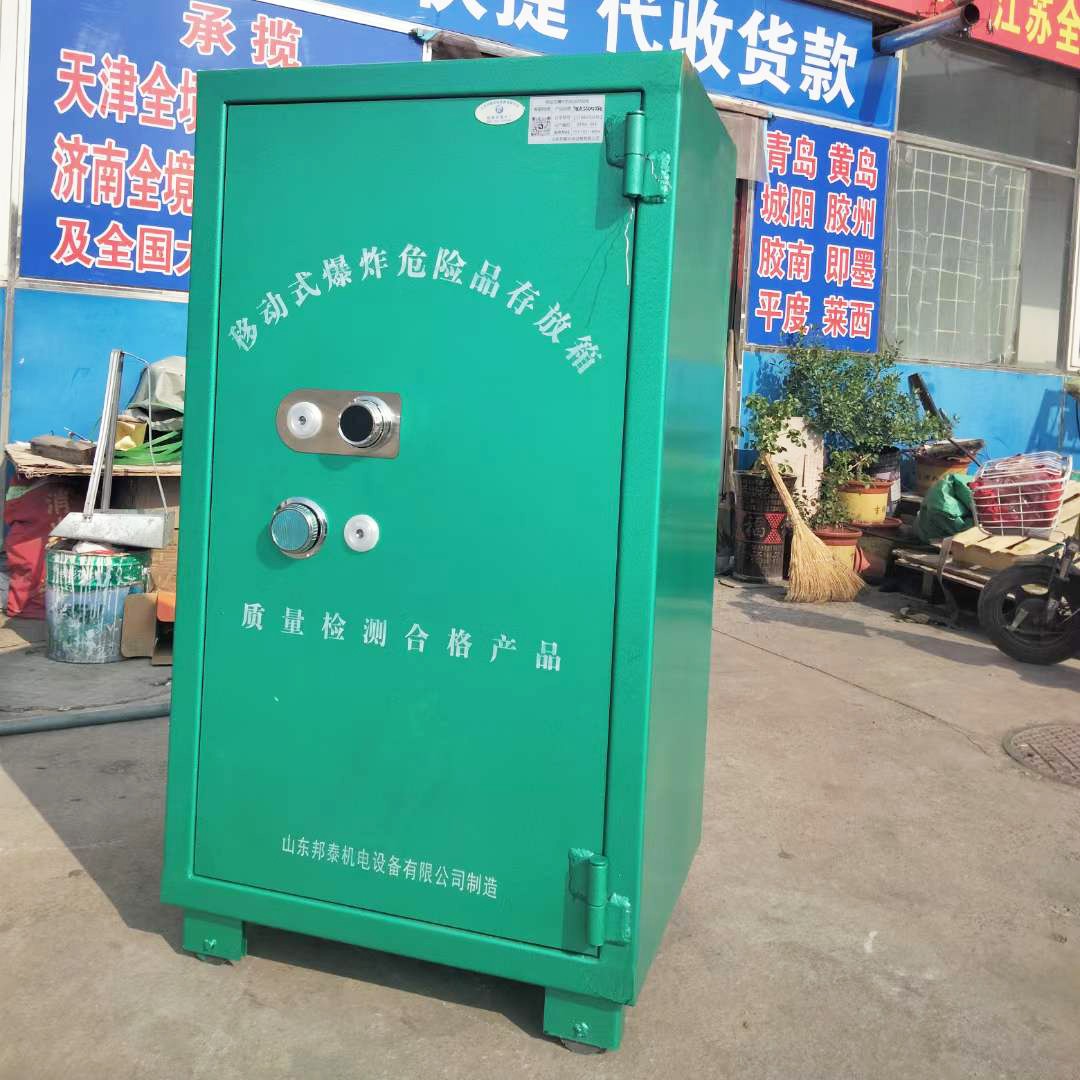 邦泰廠家根據(jù)多年的防爆存放箱生產(chǎn)經(jīng)驗(yàn),開發(fā)生產(chǎn)的火工品防爆柜,采用冷軋鋼板材質(zhì)制成,冷軋鋼板具有較高的強(qiáng)度和耐腐蝕性能,是一種常用的防爆柜材料,門板處鋼板厚度可達(dá)6mm厚,具有防爆,防撞擊的優(yōu)勢(shì),柜門配備專用的防盜鎖具(由一套防盜密碼鎖和兩把鑰匙鎖組成),能夠有效地防止柜門被非法打開。