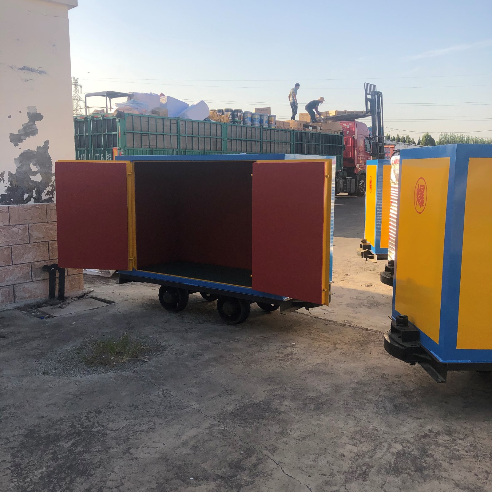 礦車式火工品運輸車采用高強度鋼材制作,結(jié)構(gòu)堅固穩(wěn)定,具備出色的抗沖擊和抗壓性能,在井下礦車運輸過程中能夠有效保護火工品的安全,鋼板厚度為6mm-8mm,柜體穩(wěn)固耐用,不易變形。