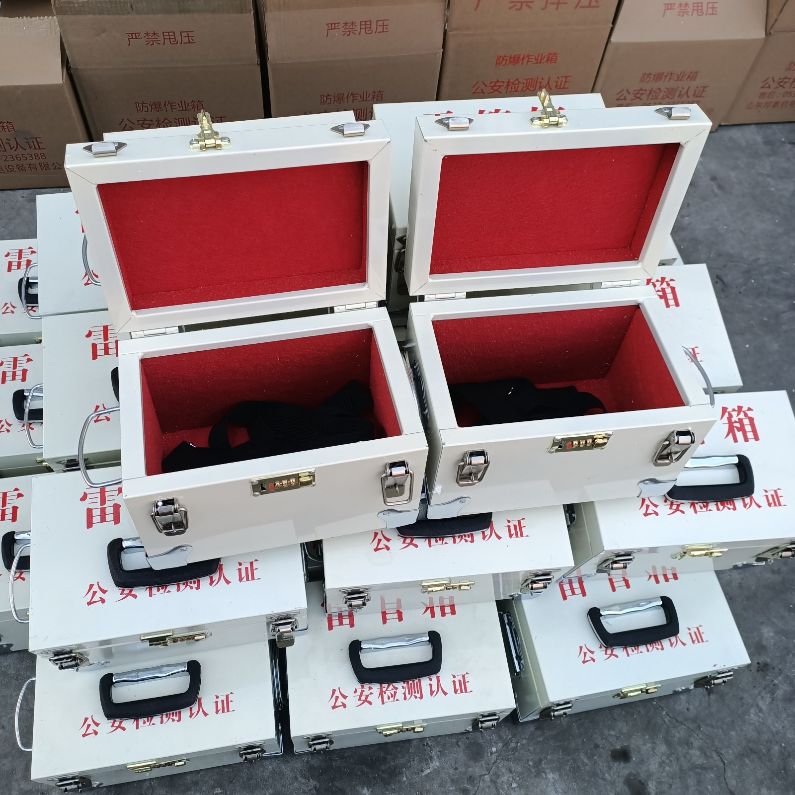 防爆箱被廣泛應(yīng)用于礦山企業(yè),路橋施工項(xiàng)目,鐵路建設(shè),隧道等各種需要爆破施工的工程,也可以存放實(shí)驗(yàn)室危險(xiǎn)品,彈藥。根據(jù)存放炸藥或者雷管的規(guī)格,有設(shè)定幾個(gè)固定的尺寸30*20*20cm,40*33*23cm,54*36*28cm,也可以根據(jù)客戶要求定制所需尺寸。