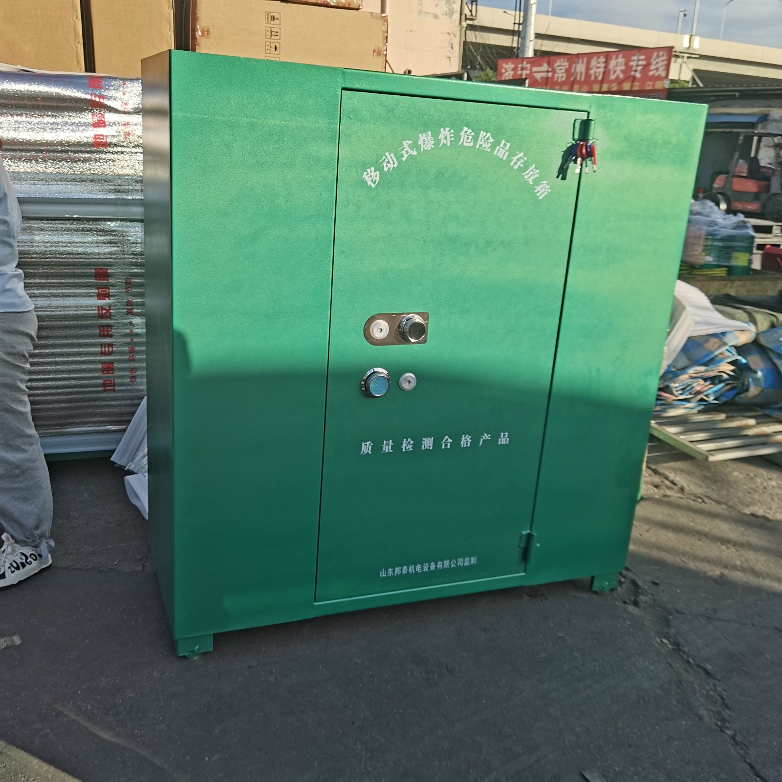 民爆物品臨時存放庫,材質(zhì)要求為鋼制結(jié)構(gòu),堅固耐用,抗壓防爆,鋼板厚度為6-8mm,為整體庫房結(jié)構(gòu),相對比可拆裝式庫房,防水性高,經(jīng)久不易變形,庫房內(nèi)部是絕緣作用的木板和一層防靜電阻燃氈墊,存放庫材質(zhì)具有防爆,防靜電的特質(zhì),在各種爆破工程用于儲存危險物品提供了很大的安全保障,附帶有年檢內(nèi)最新日期的公安檢測報告,防靜電檢測報告以及防爆檢測報告,并配備有生產(chǎn)合格證。