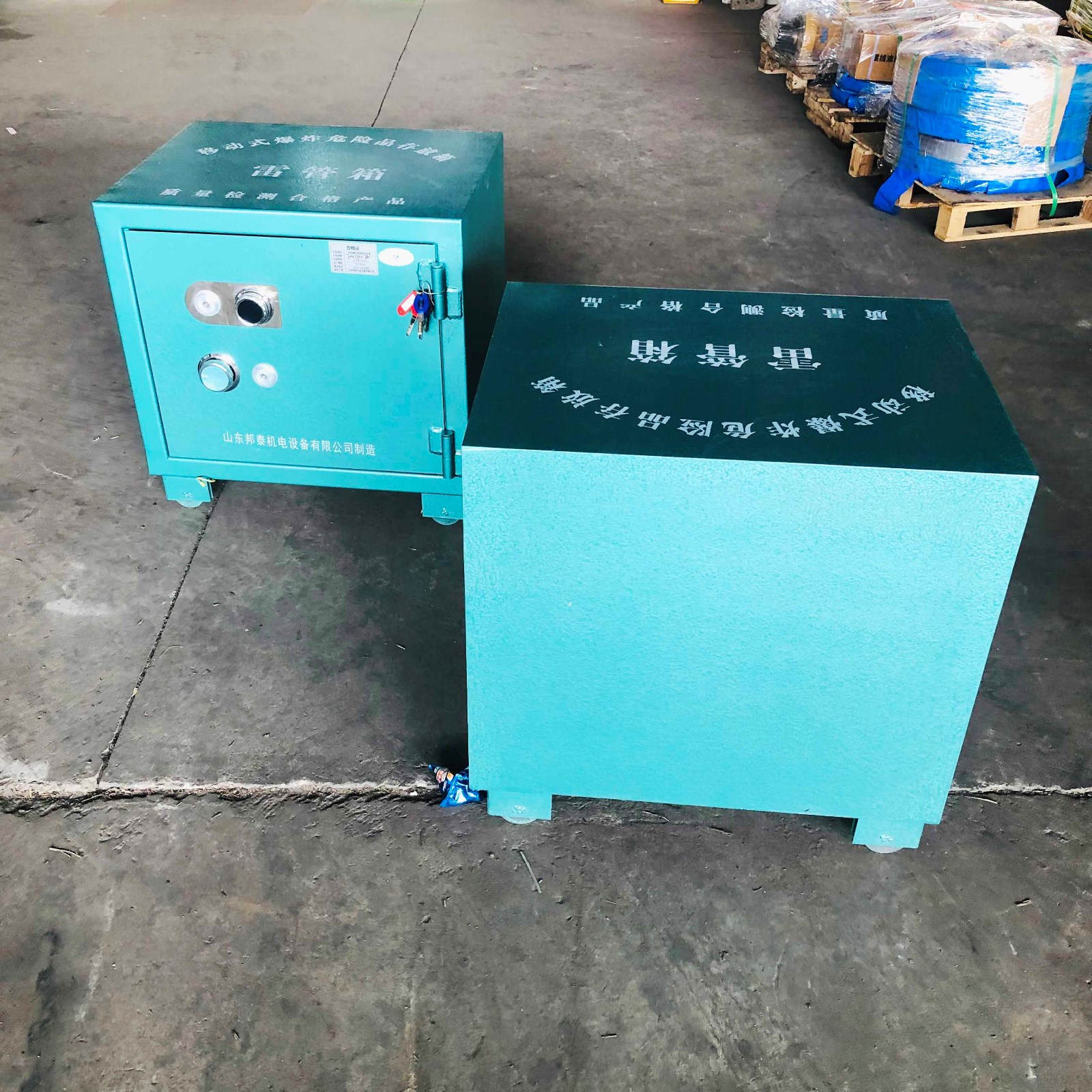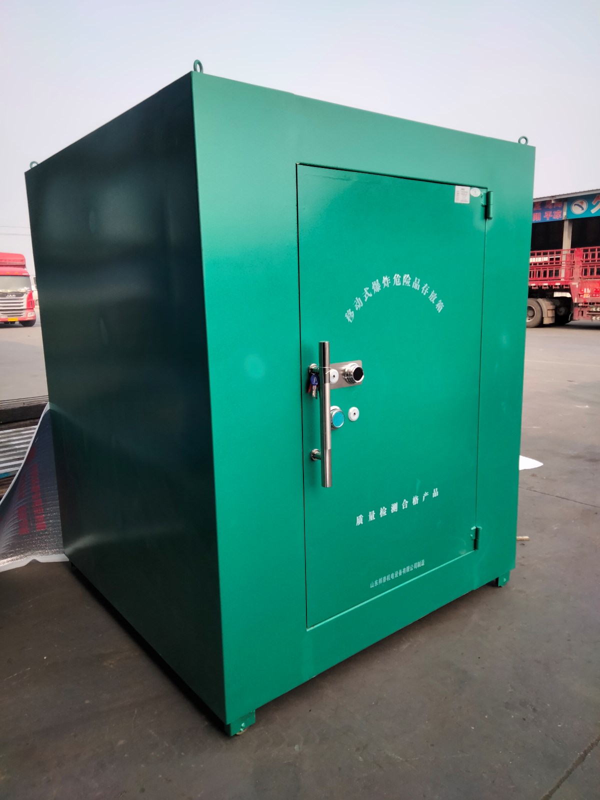 此外,這款存放柜還采用了帶輪子的設(shè)計,可以自由地將其移動到需要擺放的位置,所以,被稱為可移動式爆炸危險品存放柜。