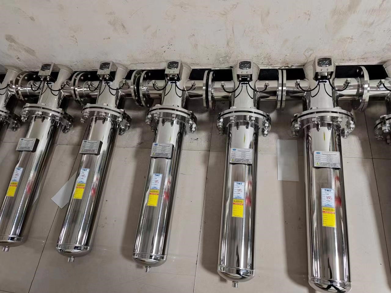 。1)除菌過濾器一般采用十字懸掛式,水平進出。多芯過濾器可設計成落地式。