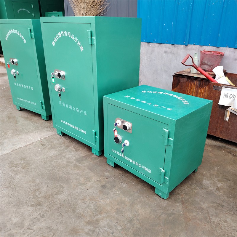 爆炸危險(xiǎn)品存放柜,根據(jù)存放的爆炸物品的不同(炸藥、雷管),也叫做炸藥柜、雷管柜、火工品存放柜、爆破保險(xiǎn)柜、移動(dòng)式爆炸危險(xiǎn)品存放箱等其稱呼。同時(shí)還具備有防爆、防靜電、防火、防盜、防潮等特點(diǎn)。主要適用于各類礦山、隧道、民爆工程、等需要開山爆破的地方,發(fā)揮著重要作用。