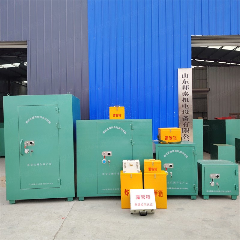 爆炸危險(xiǎn)品存放柜,根據(jù)存放的爆炸物品的不同(炸藥、雷管),也叫做炸藥柜、雷管柜、火工品存放柜、爆破保險(xiǎn)柜、移動(dòng)式爆炸危險(xiǎn)品存放箱等其稱(chēng)呼。同時(shí)還具備有防爆、防靜電、防火、防盜、防潮等特點(diǎn)。主要適用于各類(lèi)礦山、隧道、民爆工程、等需要開(kāi)山爆破的地方,發(fā)揮著重要作用。