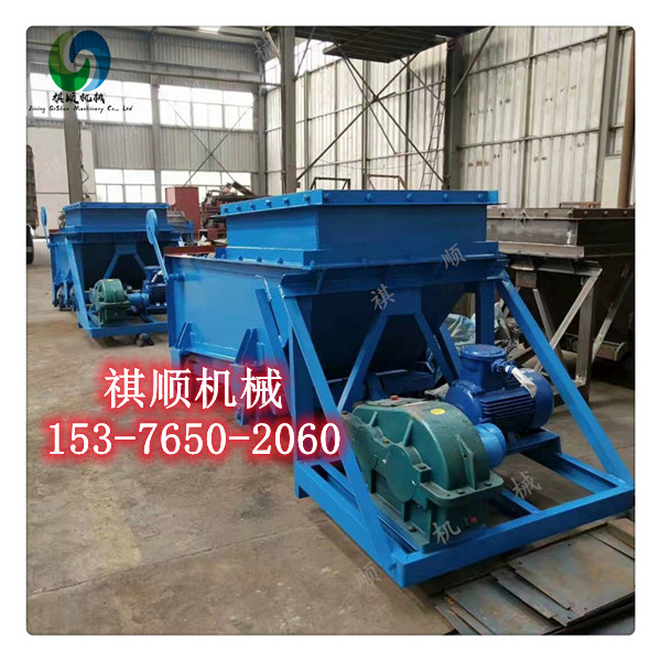 K型給料機(jī)由機(jī)架、底板(給料槽)、傳動(dòng)平臺(tái)、漏斗、閘門、托輥組成,當(dāng)電機(jī)開動(dòng)后經(jīng)彈性聯(lián)軸器,減速機(jī)、曲柄連桿機(jī)構(gòu)拖動(dòng)傾斜5度的底板,在輥上作直線往復(fù)運(yùn)動(dòng),把煤或其它磨琢性小,粘性不大的松散粒狀,粉狀物料從給料設(shè)備中均勻地卸到受料設(shè)備中