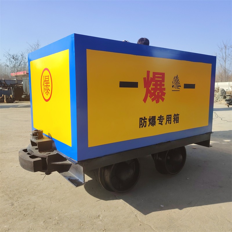 山東邦泰的礦用有軌爆炸危險品運(yùn)輸車在結(jié)構(gòu)設(shè)計上充分考慮了礦山井下復(fù)雜多變的環(huán)境特點(diǎn)。其箱體采用獨(dú)特的復(fù)合式結(jié)構(gòu),由三層不同材料組成,宛如為爆炸物品構(gòu)筑了一道堅不可摧的安全防線。最外層的6 - 8mm厚高強(qiáng)度防爆鋼板,如同堅固的鎧甲,能夠有效抵御井下可能出現(xiàn)的各類碰撞和沖擊,無論是巷道壁的刮擦,還是意外掉落的巖石撞擊,都難以對其造成實質(zhì)性損傷,為內(nèi)部的爆炸物品提供了可靠的物理防護(hù)。中間層的10mm絕緣木板發(fā)揮著多重關(guān)鍵作用,它不僅能有效緩沖運(yùn)輸過程中因軌道不平整而產(chǎn)生的顛簸,降低對爆炸物品的震動影響,還具備良好的隔溫性能,防止因井下溫度變化對爆炸物品的穩(wěn)定性造成威脅,同時還能阻止靜電的傳導(dǎo),避免靜電引發(fā)的潛在危險。最內(nèi)層的2mm防靜電阻燃?xì)謮|則是針對火工品運(yùn)輸中最容易出現(xiàn)的靜電問題而設(shè)計,它能夠有效消除因摩擦產(chǎn)生的靜電火花,從源頭上杜絕了靜電引發(fā)爆炸事故的可能性。