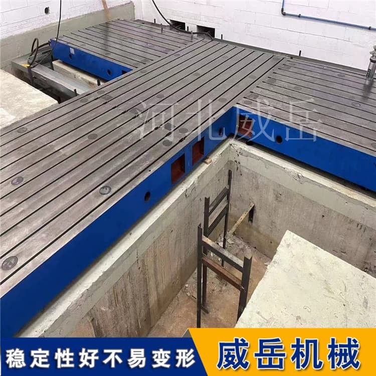 表面硬化處理:對(duì)底板工作面進(jìn)行“中頻淬火”處理,淬硬層深3-5mm,表面硬度提升至45-55HRC,耐磨性提高2倍以上。在電子元件沖擊振動(dòng)測(cè)試中,硬化后的表面可承受頻繁的工裝夾具拆裝,長(zhǎng)期使用后平面度誤差仍能控制在0.03mm/m以內(nèi)。