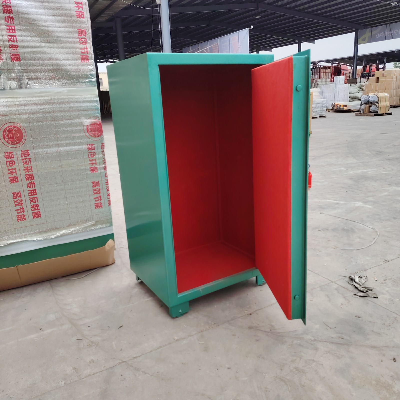 外體是采用6mm防爆鋼板,內(nèi)置10mm絕木板,內(nèi)部鋪設(shè)抗震防靜電阻燃?xì)。因移?dòng)火工品柜是放置在室外露天使用,為增強(qiáng)其防盜作用,柜體的鎖具采用的是GA機(jī)械雙鎖,即兩把機(jī)械鎖和一把三位密碼機(jī)械轉(zhuǎn)盤鎖