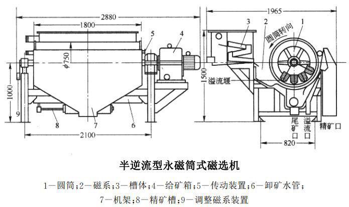 其工作原理是:當(dāng)?shù)V漿進(jìn)入磁場(chǎng)區(qū)時(shí),其中強(qiáng)磁性礦物被吸附在圓筒表面,弱磁性和非磁性礦物被甩掉排出,而吸附在圓筒表面上的強(qiáng)磁性礦物隨圓筒旋轉(zhuǎn),被帶出磁場(chǎng)區(qū),完成分選作業(yè)。