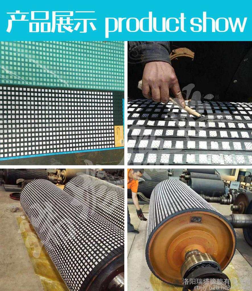 陶瓷包膠有效解決潮濕環(huán)境下,皮帶打滑**解決方案,瑞塔橡膠為用戶提供冷硫化陶瓷包膠膠板與現(xiàn)場包膠服務(wù),優(yōu)質(zhì)的包膠材料,先進(jìn)的包膠工藝,專業(yè)的現(xiàn)場施工隊伍有效確保滾筒包膠的粘接強(qiáng)度及使用效果。