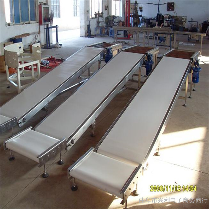皮帶機(jī)結(jié)構(gòu)形式有:槽型皮帶機(jī)、平型皮帶機(jī)爬坡皮帶輸送機(jī)、轉(zhuǎn)彎皮帶機(jī)、伸縮皮帶機(jī)等多。種形式,輸送帶上還可增設(shè)提升擋板、裙邊等附件,能滿足各種工藝要求。兩側(cè)配以工作臺(tái)、加裝燈架,可作為電子儀表裝配,食品包裝等皮帶機(jī)裝配線。